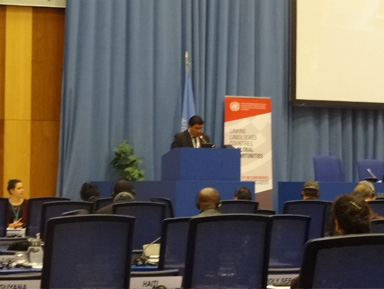 El Viceministro de Comercio Exterior e Integración, Clarems Endara Vera, en representación de la Presidencia del Grupo de los 77 de la ONU (G77 + China) intervino y presento a consideración de la Conferencia el proyecto de resolución A/CONF.225/L.X, en la que se expresa el profundo agradecimiento a la Organización de las Naciones Unidas por mantener vigente la preocupación universal sobre los derechos de los países en desarrollo sin Litoral y la búsqueda de soluciones para estas Naciones.