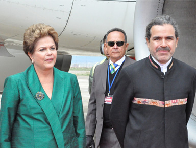 Este jueves 22 por la mañana, llegó a Bolivia la presidenta de la República Federativa del Brasil, Dilma Rouseff, como representante oficial para los actos de Posesión del Tercer Mandato del Presidente Evo Morales, en la ciudad de La Paz.