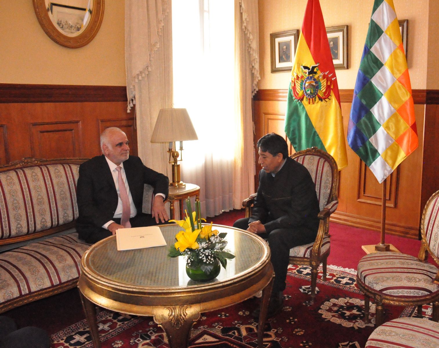 El nuevo Embajador de la República del Perú, Félix Ricardo Américo Antonio Denegri Boza, presentó las Copias de sus Cartas Credenciales al Ministro de Relaciones Exteriores, David Choquehuanca, en un acto protocolar que se desarrolló en el Salón de Embajadores de la Cancillería boliviana.