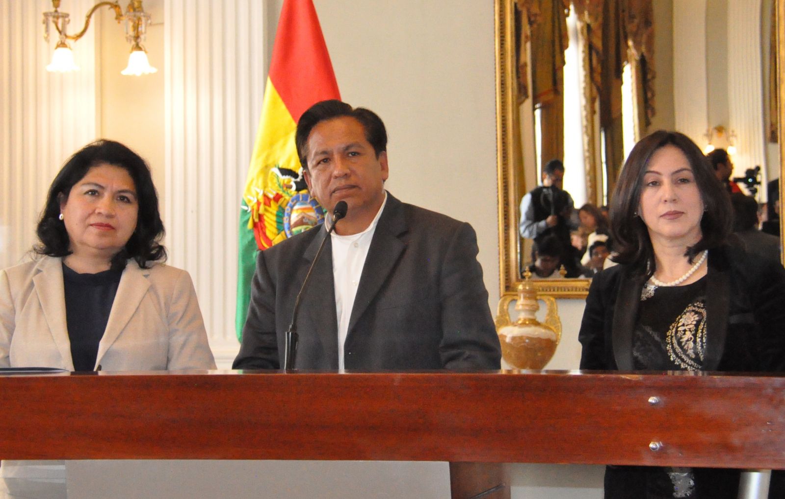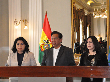 El canciller interino, René Martínez junto a la vicecanciller, Guadalupe Palomeque y la viceministra de Gestión Institucional y Consular, Carmen Almendras hicieron conocer la protesta boliviana contra los hechos suscitados ayer en territorio boliviano, donde nueve ciudadanos bolivianos, fueron arbitrariamente detenidos por carabineros de Chile.