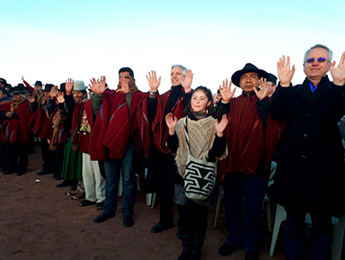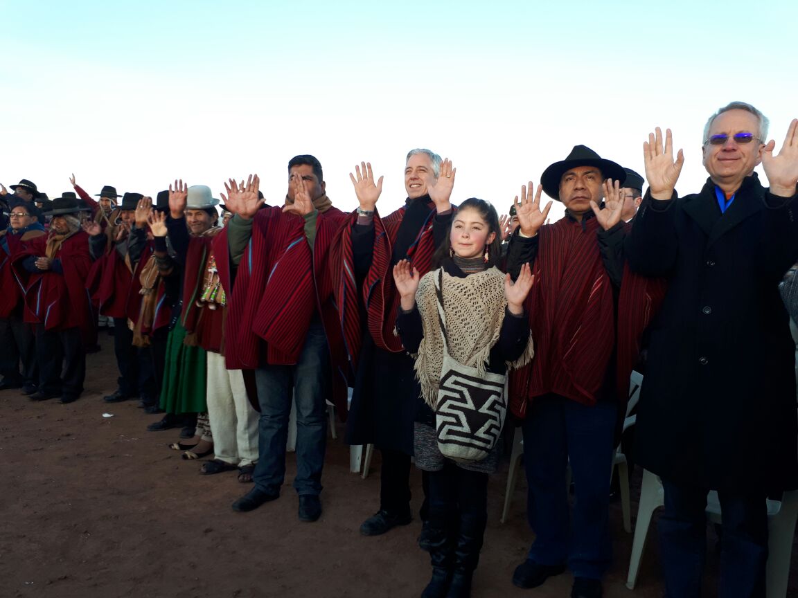 García Linera y Huanacuni estuvieron acompañadas por diferentes autoridades nacionales, departamentales y municipales, quienes participaron de una ofrenda a la Pachamama preparada por el Consejo de Amautas de la región con el objetivo de agradecer a la Madre Tierra.