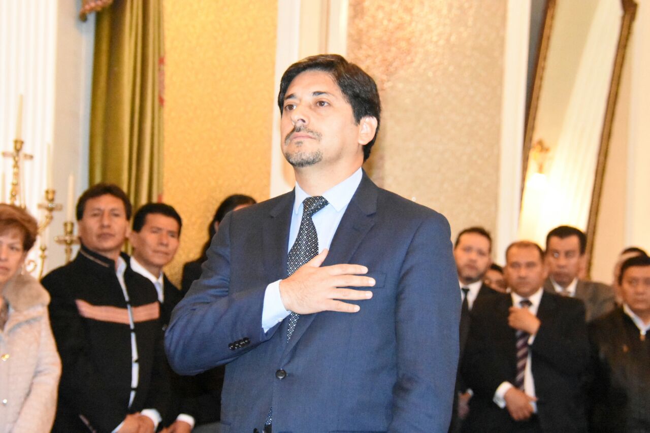 Agradeciendo la confianza del Presidente, Evo Morales Ayma y del Canciller Fernando Huanacuni Mamani depositada en su persona, juró como nuevo Viceministro de Gestión Institucional y Consular, Raúl Alberto Castro Cuéllar la mañana de hoy en el salón Samaipata de Cancillería.