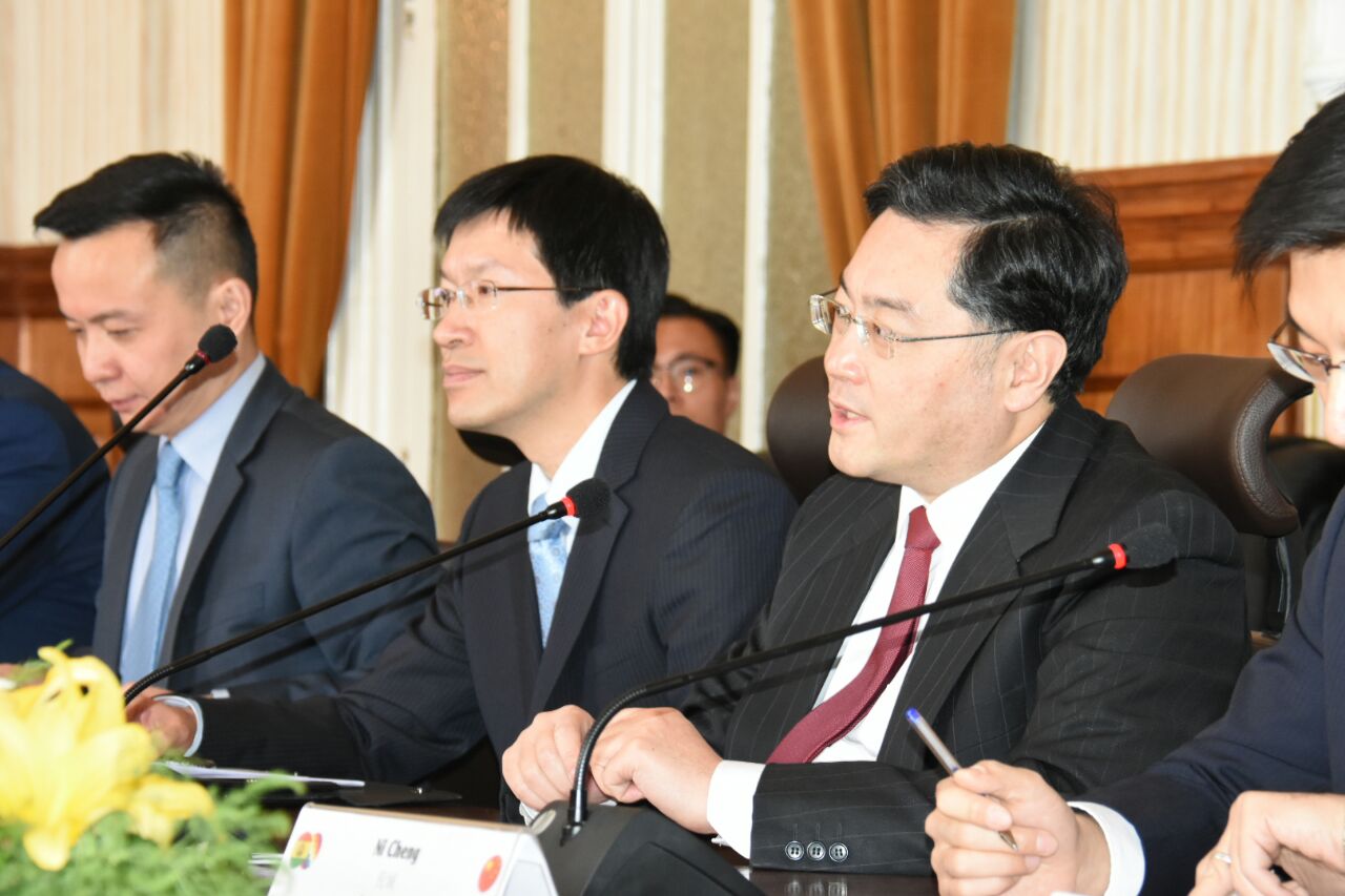En la ocasión, el Ministro Qin Gang, como Jefe de la Delegación china y la Viceministra de Relaciones Exteriores, Emb. María del Carmen Almendras Camargo como Jefa de la Delegación boliviana, presidieron el IX Mecanismo de Consultas Políticas Bolivia – China.