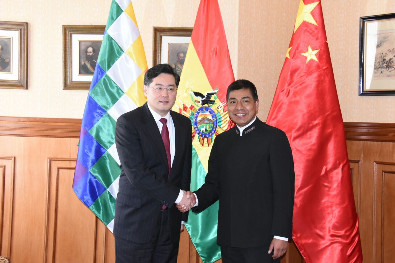En el marco de la importancia que otorgan el Gobierno del Estado Plurinacional de Bolivia y el Gobierno de la República Popular China a sus relaciones bilaterales, el día de hoy 15 de enero de 2018, el Ministro de Relaciones Exteriores Emb. Fernando Huanacuni recibió en Visita Oficial al Ministro Asistente de Relaciones Bilaterales de la República Popular China, Sr. Qin Gang.