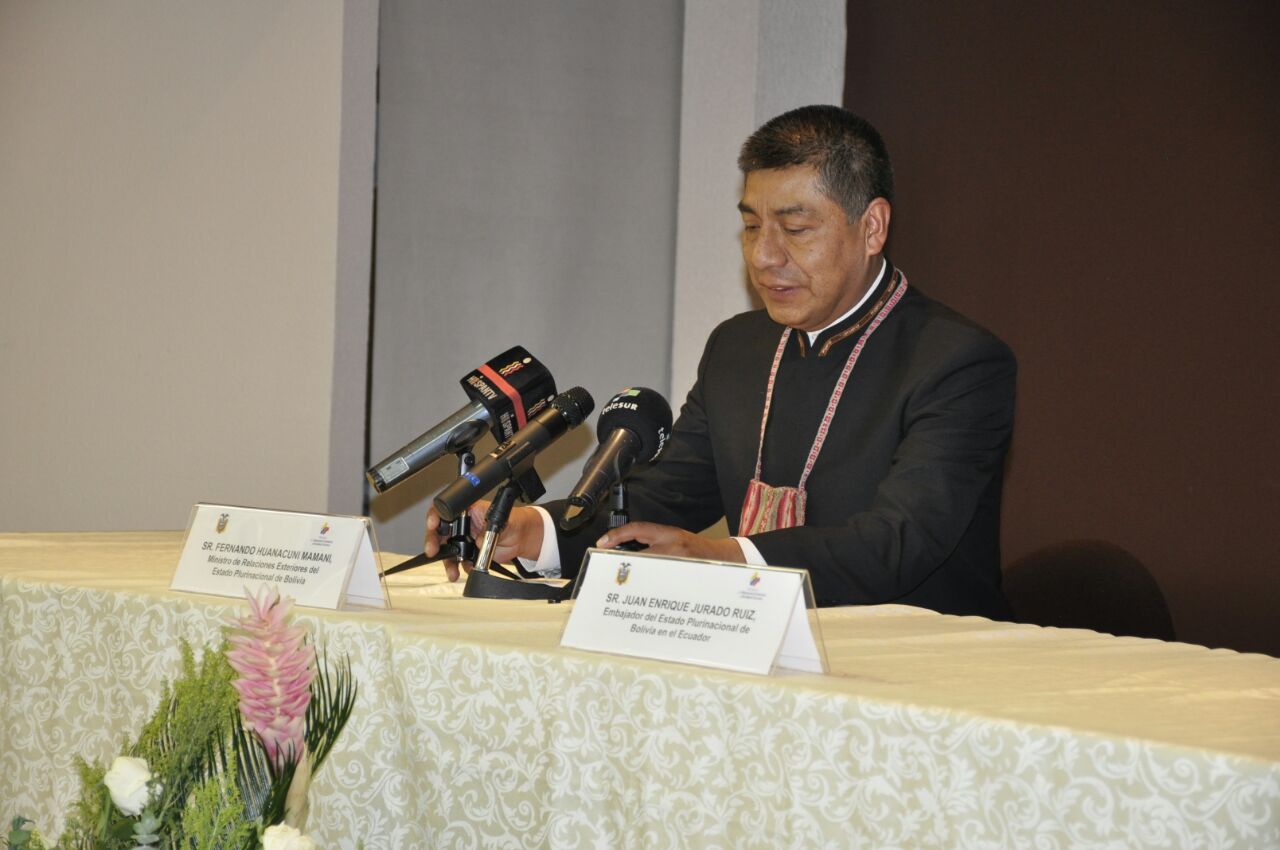 Ecuador | Conferencia de prensa del Canciller de Bolivia, Fernando Huanacuni Mamani