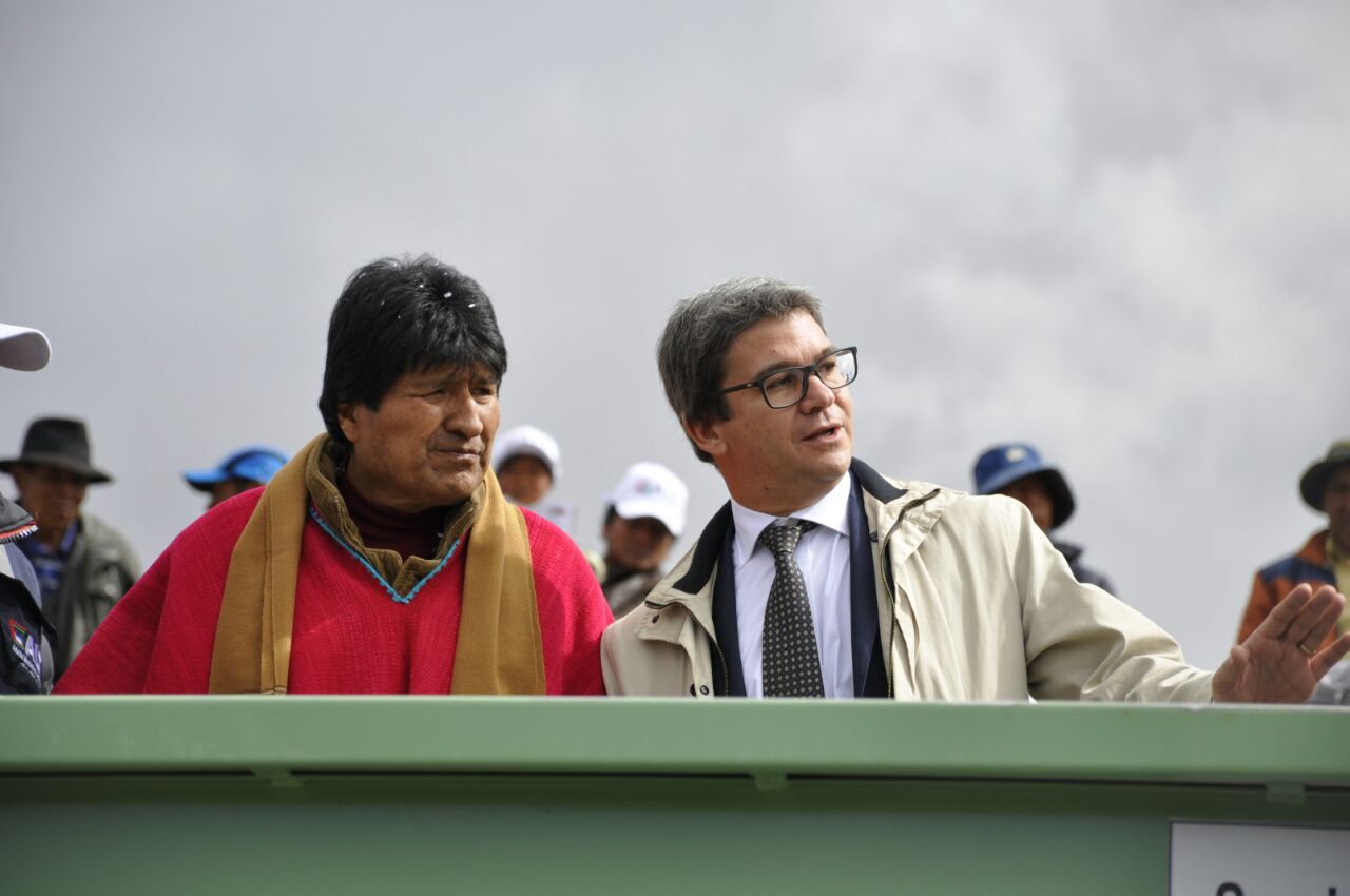 “Es una alegría estar acompañado por autoridades internacionales que hicieron posible este proyecto. El agua es un derecho humano y no podemos atajarnos, debemos compartirlo con todos”, afirmó el Presidente Morales a tiempo de agradecer las gestiones que realizó la Cancillería en coordinación con la Comunidad Andina, para canalizar recursos de la Unión Europea en proyectos binacionales de regiones fronterizas, en este caso Bolivia y Perú.