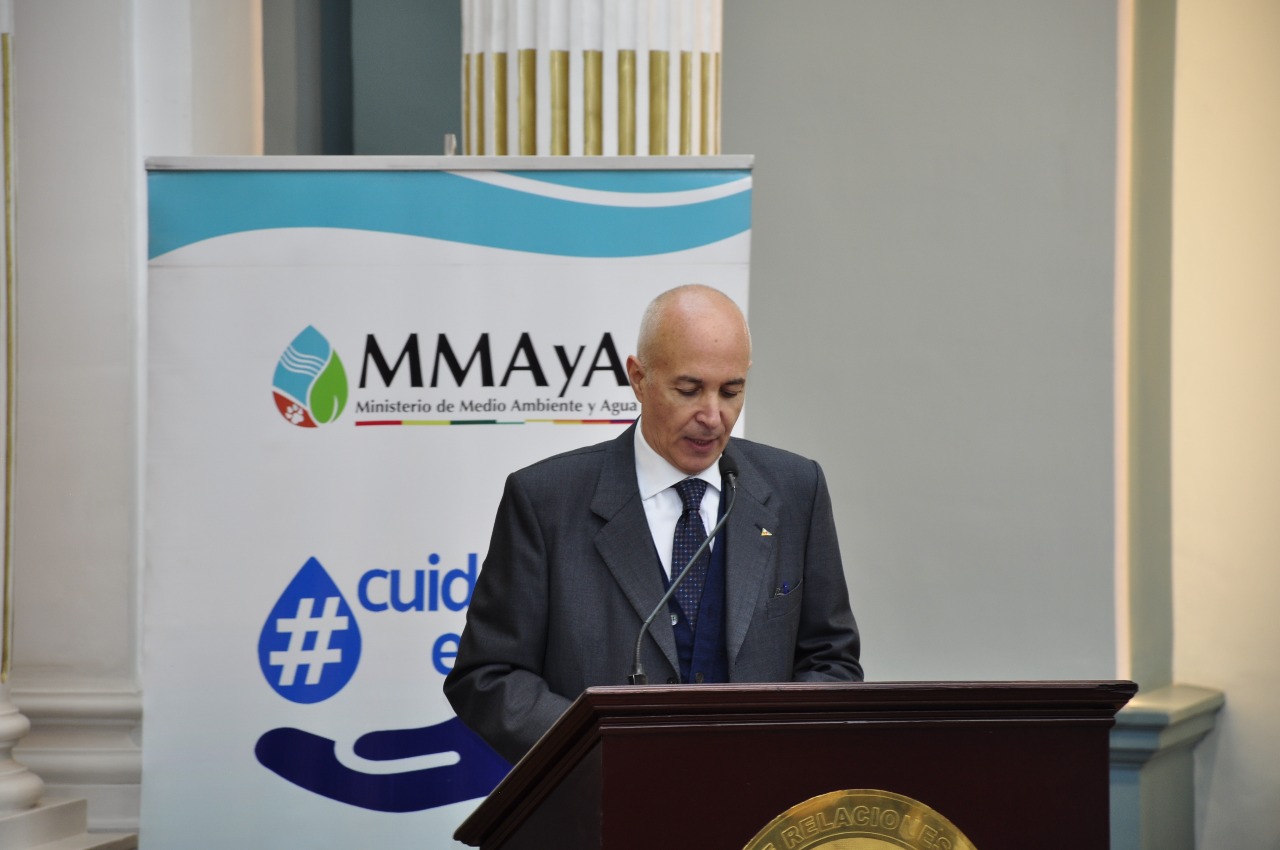 En el evento estuvieron presentes el Canciller del Estado Plurinacional de Bolivia, Fernando Huanacuni Mamani, el Ministro de Agua y Saneamiento, René Ortuño Yañez, el Embajador de la República de Italia, Plácido Vigo, y el Director de la Agencia Italiana de Cooperación para el Desarrollo, Ángelo Benincasa.
