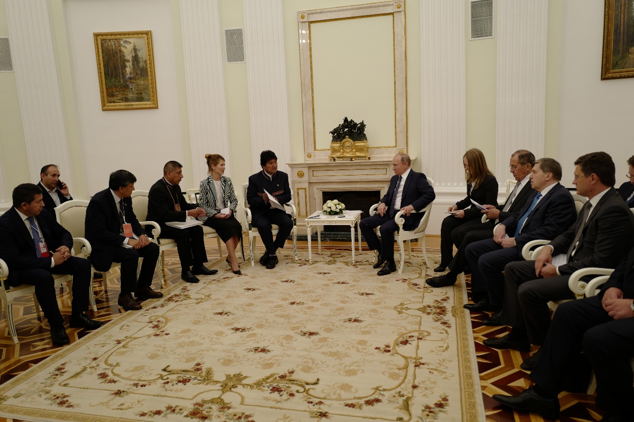 El Presidente del Estado Plurinacional de Bolivia, Evo Morales sostuvo una reunión con su homólogo de Rusia Vladimir Putin, a primeras horas de esta jornada; a la conclusión, el mandatario boliviano informó que ambos países están interesados en la consolidación de la comunidad euroasiática, donde no solo países de Europa y Asia sino de Latinoamérica puedan integrarse a través de acuerdos comerciales comunitarios.