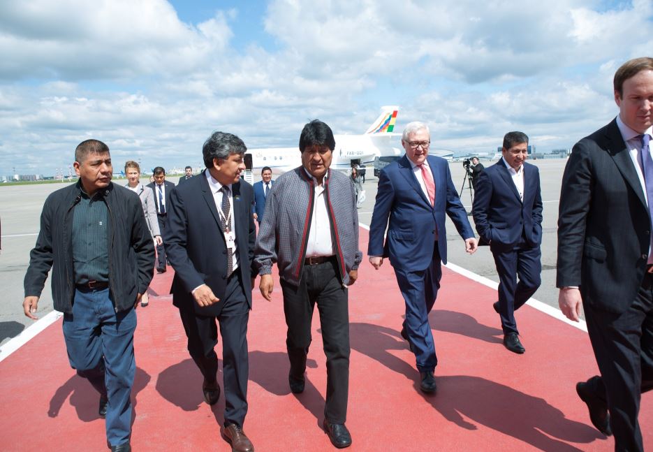 El Presidente junto al Canciller Huanacuni llegaron a Rusia aproximadamente a las 3.30 a.m. (hora boliviana) de esta jornada para cumplir una intensa agenda bilateral con el Presidente Vladimir Putin. A su arribo al aeropuerto de Sheremetyevo las autoridades fueron recibidas por el Vicecanciller ruso Serguéi Riabkob y el Embajador de Bolivia en Rusia, Hugo Virralloel.