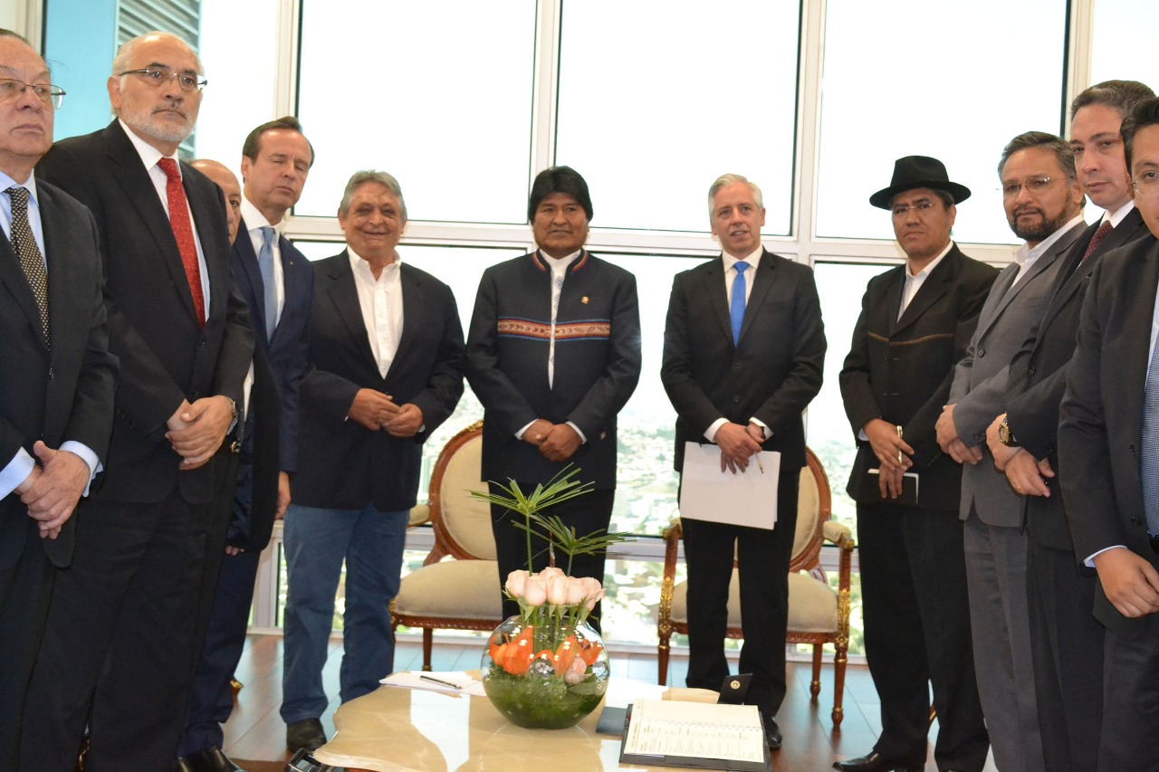 Bolivia | Presidente Evo Morales Ayma y Vicepresidente Álvaro García Linera junto a Expresidentes y Excancilleres del Estado Plurinacional