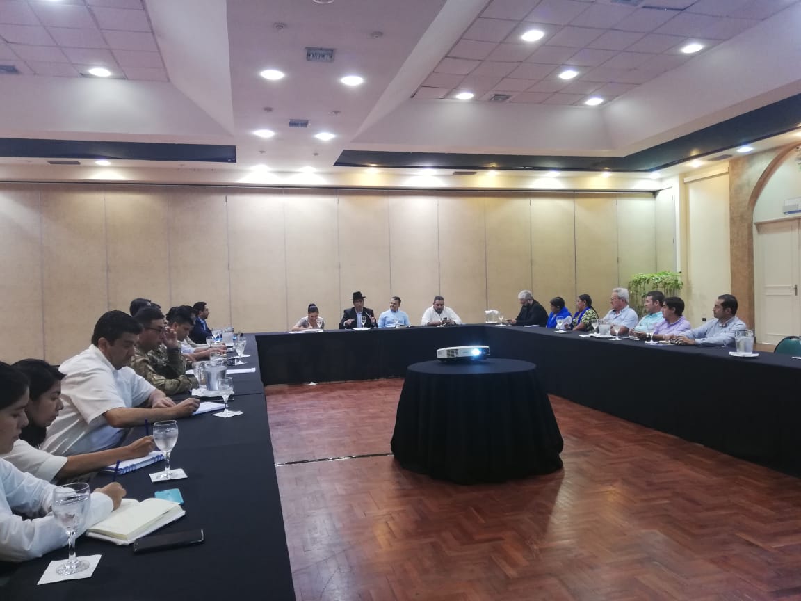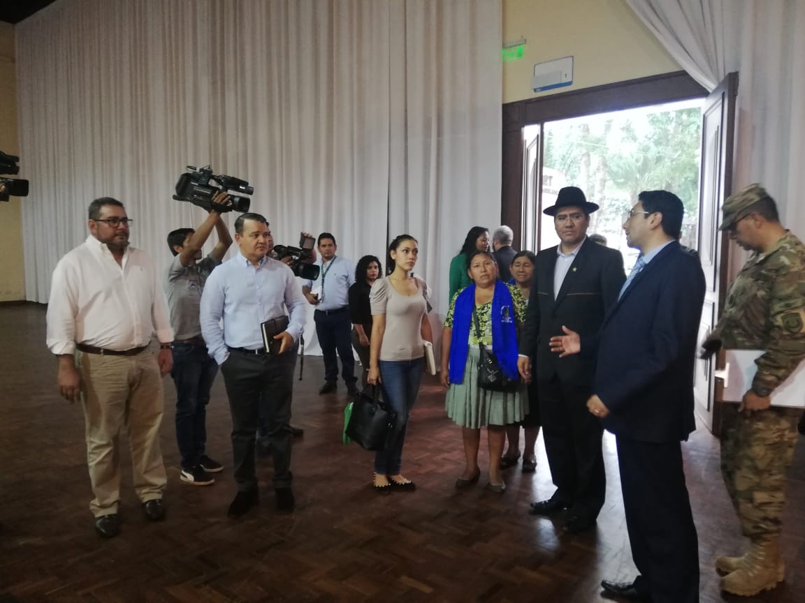 Al encuentro de coordinación asistieron la Presidenta del Senado, Adriana Salvatierra, representantes de Fexpocruz, Cainco y la CAO, autoridades departamentales y municipales, además de representantes de las Bartolinas Sisas.