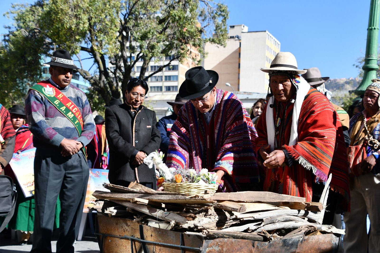 Del acto participaron también: el Viceministro de Descolonización, Cancio Mamani, el Alcalde del Municipio de Tiwanaku Octavio Quispe Chura, el Jiliri Mallku cantonal, Sabino Limachi y autoridades originarias de Tiwanaku, además del Cuerpo Diplomático acreditado en Bolivia.