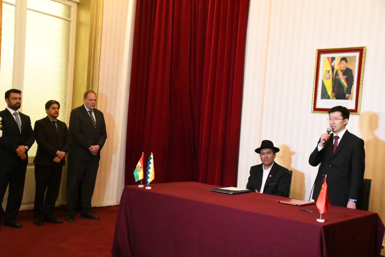 El acto se realizó en el Ministerio de Relaciones Exteriores de Bolivia, con presencia del Canciller Diego Pary y el Embajador de China, Liang Yu, quienes rubricaron el documento oficial.