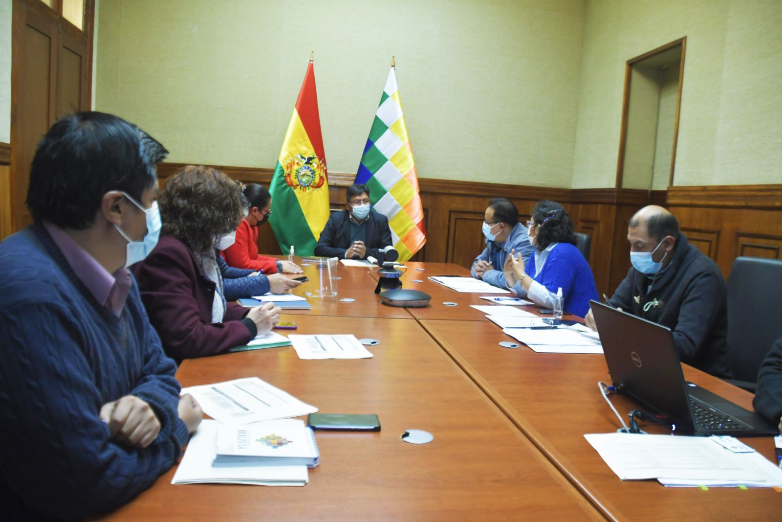 El Viceministro de Relaciones Exteriores, Emb. Freddy Mamani Machaca y el Viceministro de Agua Potable y Saneamiento Básico, Carmelo Valda Duarte, junto a los equipos técnicos, hoy miércoles 5 de enero, se reunieron en las instalaciones de la Cancilleria para conversar sobre el proceso preparatorio de la VI Conferencia Latinoamericana de Agua y Saneamiento – LATINOSAN 2022 “Saneamiento: Un Llamado a la Acción”, que se celebrará en Bolivia en octubre 2022.
