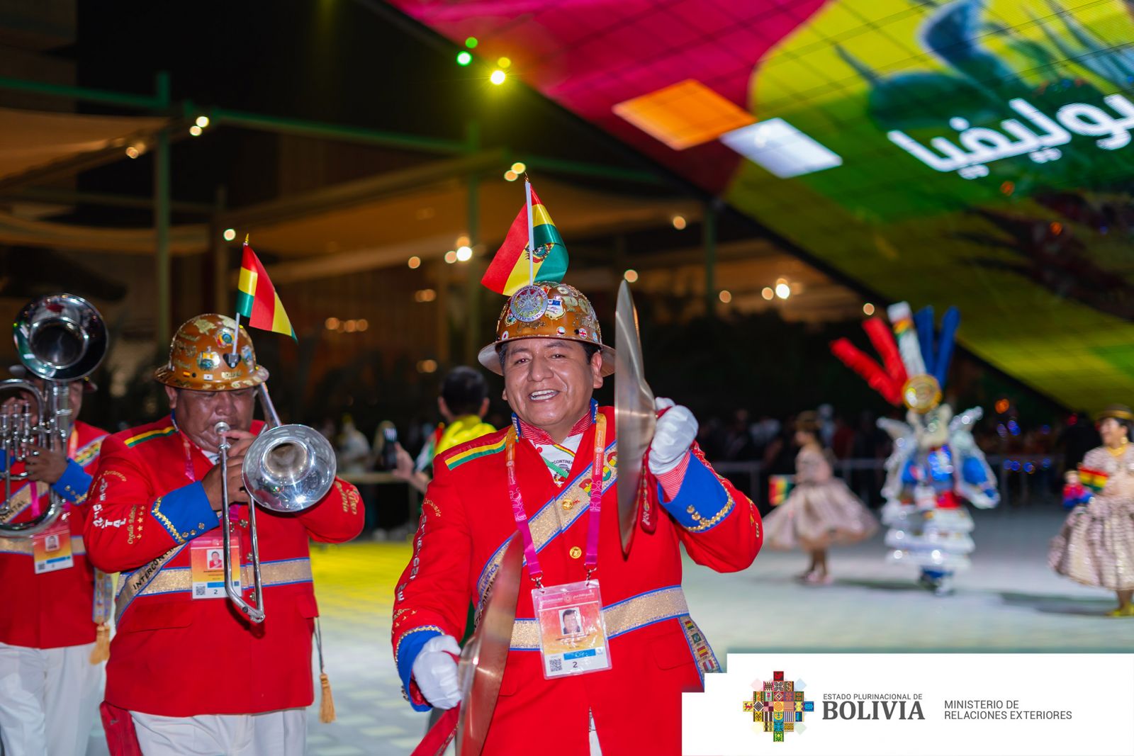 Dubái, Emiratos Árabes Unidos. 23 de marzo 2022.- El Ministerio de Relaciones Exteriores junto a su viceministerio de Comercio Exteriores participan desde octubre del 2021 en la Expo Dubái 2020, plataforma internacional con participación de miles de inversionistas y países donde el Pabellón Bolivia volvió a ser el protagonista, esta vez debido al talento y emoción de la Banda Intergaláctica Intercontinental Poopó de Oruro para el mundo entero.