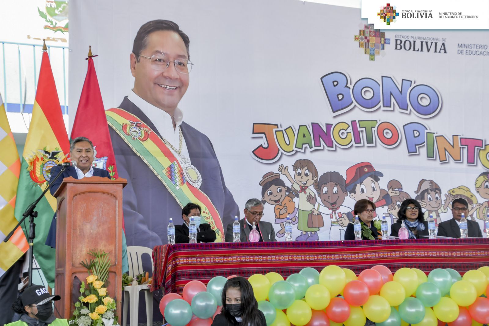 Además, señaló que el Bono Juancito Pinto pretende contribuir al esfuerzo de las familias bolivianas y que este compromete al Estado boliviano a su efectivización mediante la acumulación de las utilidades de las empresas estatales destacando que “todos estamos trabajando juntos por la educación y por un futuro mejor”.