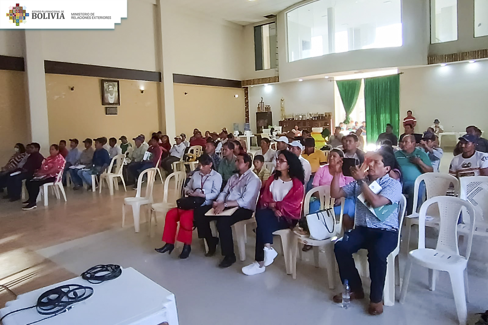 La Paz, 30 de enero de 2023.- El Ministerio de Relaciones Exteriores, a través del Viceministerio de Comercio Exterior e Integración, el Servicio Nacional de Propiedad Intelectual (SENAPI) y la Organización Mundial de Propiedad Intelectual (OMPI) en alianza con representantes de 33 asociaciones productoras, llevaron a cabo un taller para la construcción de una “marca colectiva”, con la finalidad de consolidar la imagen y posicionar la miel del Chaco Chuquisaqueño en el mercado nacional e internacional.