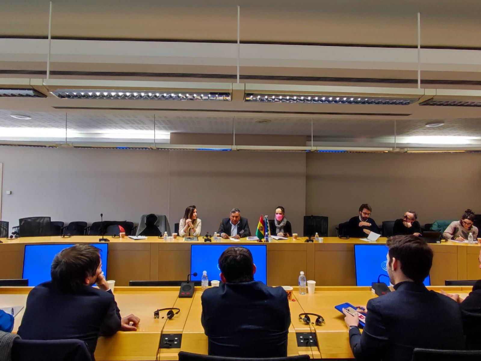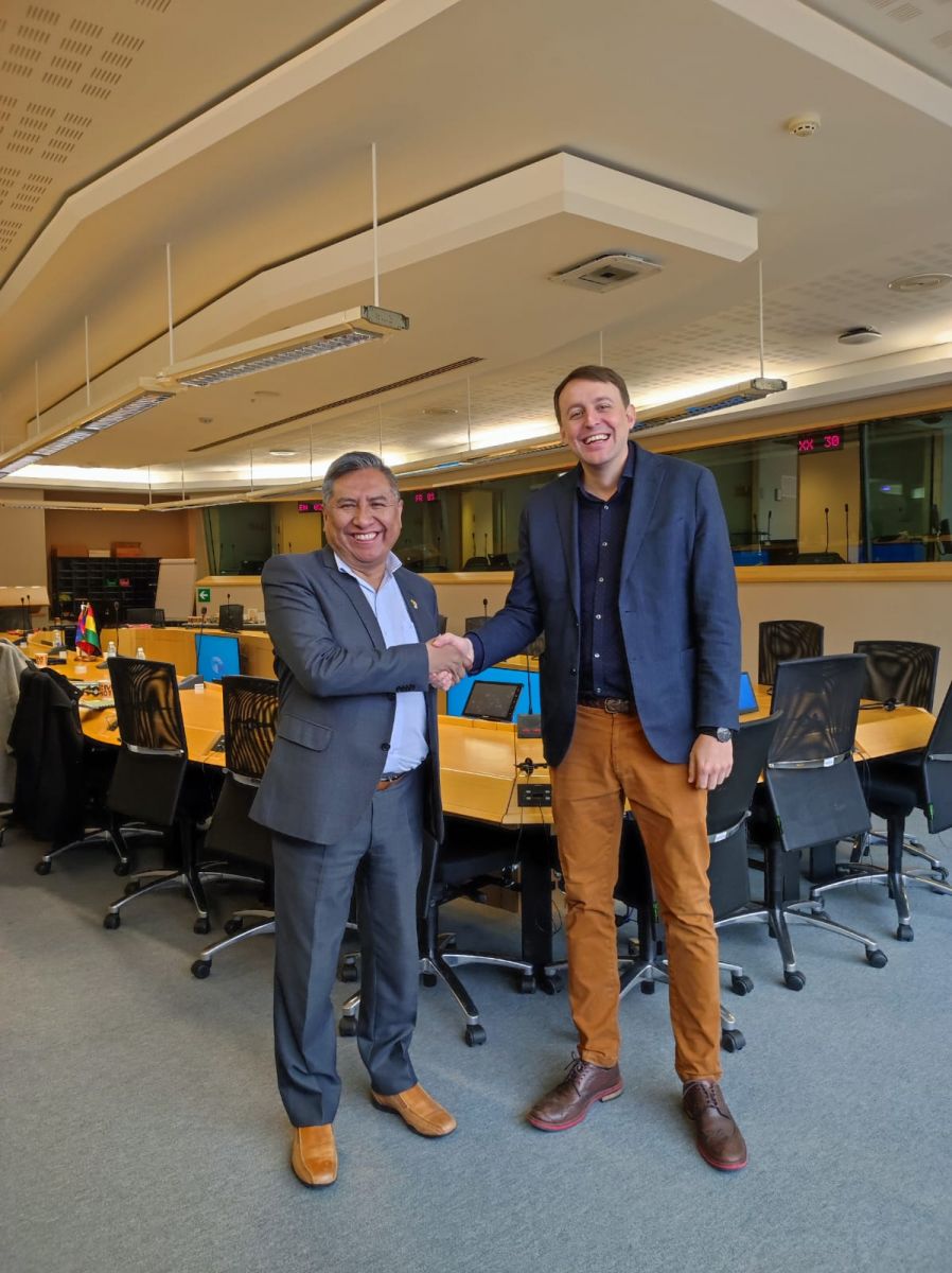 A su vez, sostuvo un encuentro con los miembros del Parlamento Europeo. Entre los diversos temas que se abordaron, las autoridades europeas aprovecharon para expresar su preocupación por la presencia de grupos parapoliciales que ocasionaron violencia en la ciudad de Santa Cruz, hace algunas semanas.