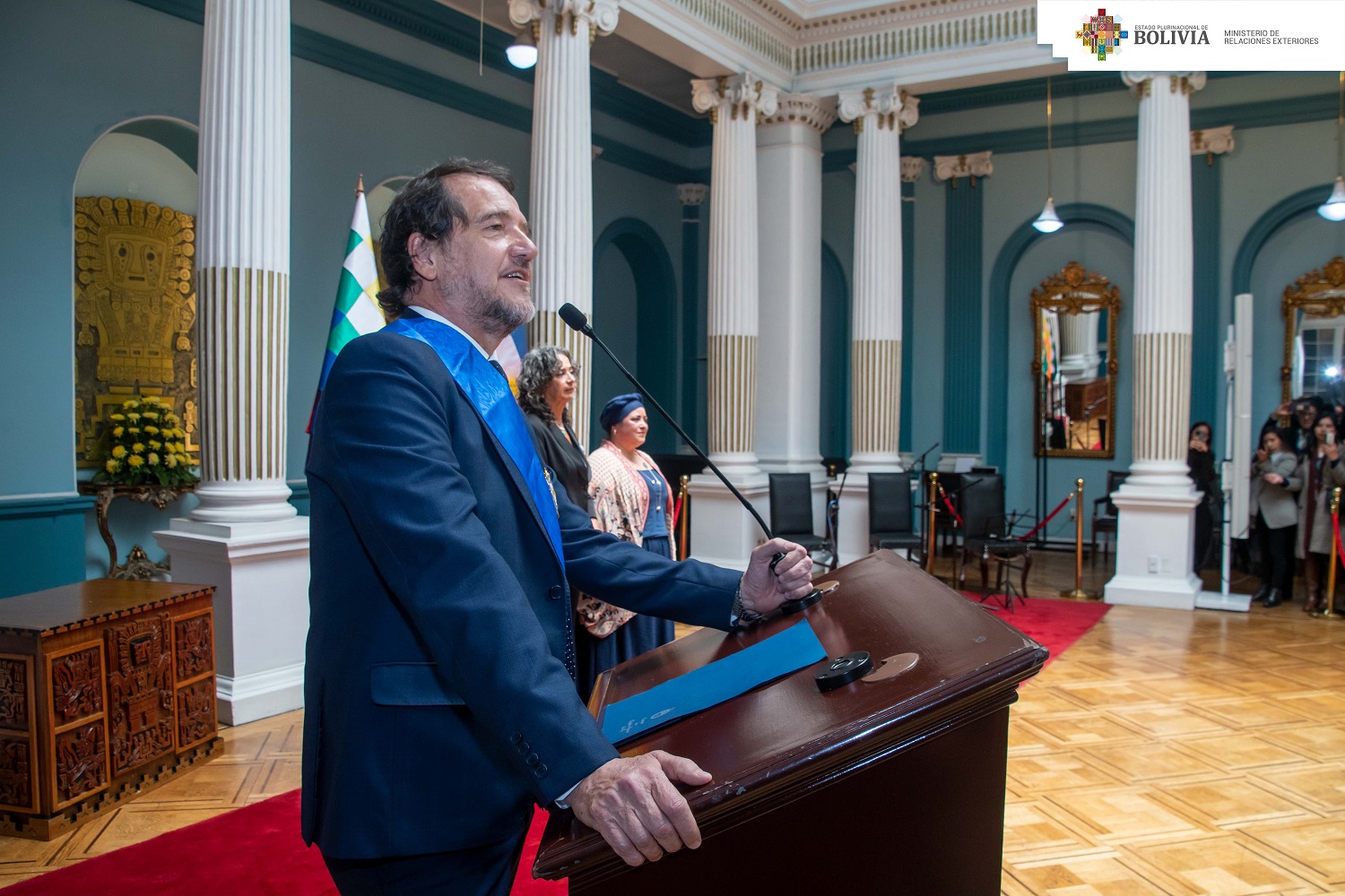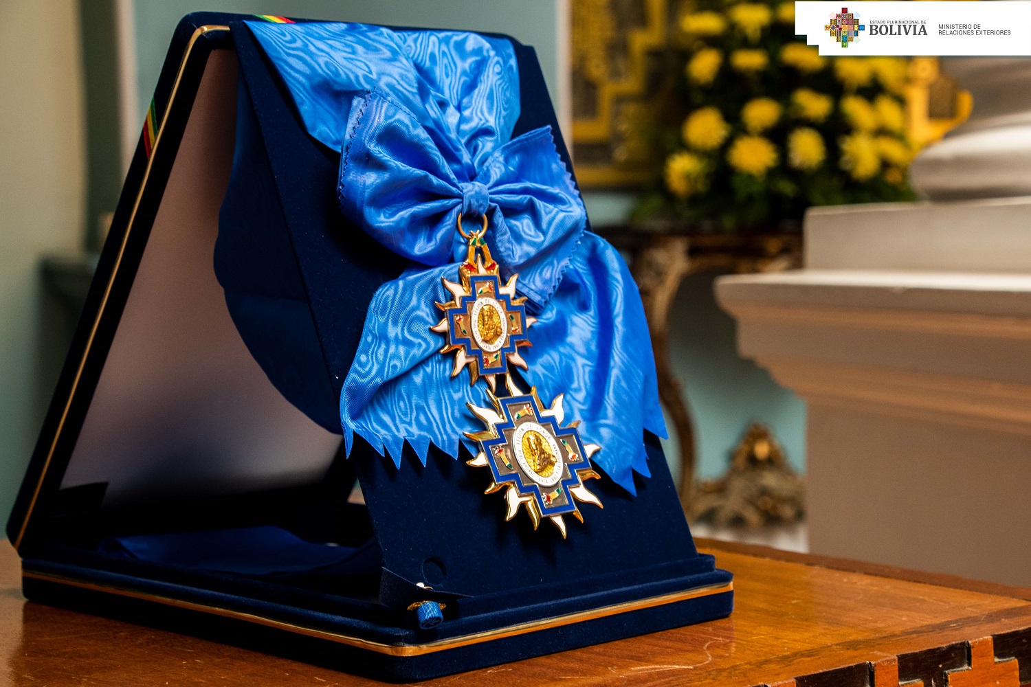 La condecoración fue entregada por la Ministra de Relaciones Exteriores a.i, Maria Nela Prada, en un acto que se realizó en la Cancillería boliviana y a donde llegaron representantes del Órgano Ejecutivo, del Órgano Legislativo, del cuerpo diplomático acreditado en el país, y de otras instituciones.