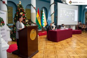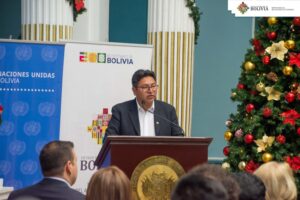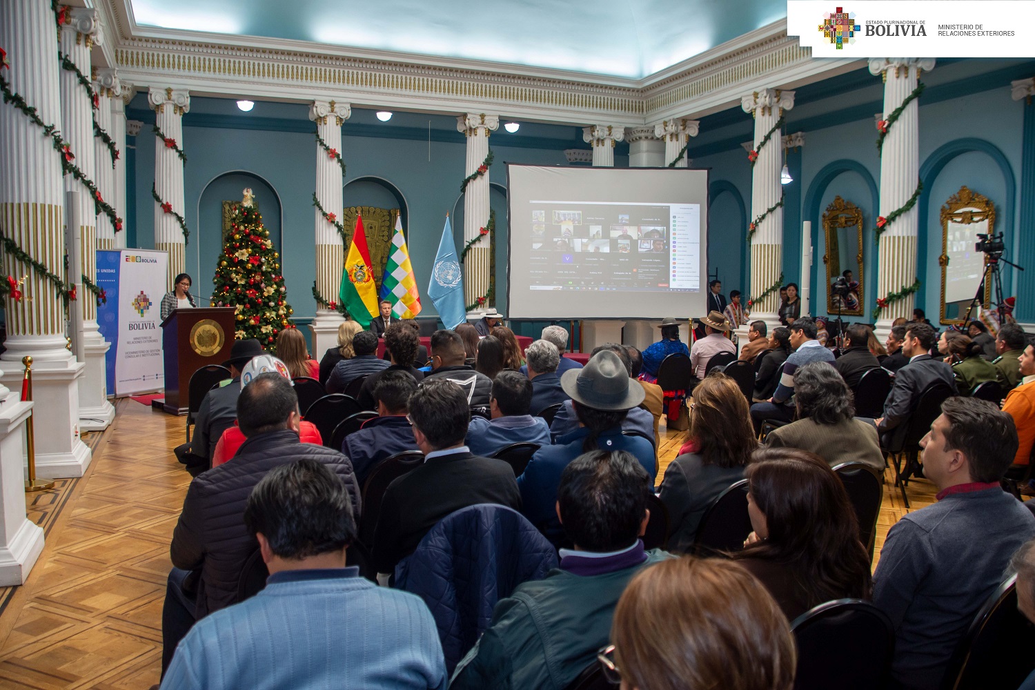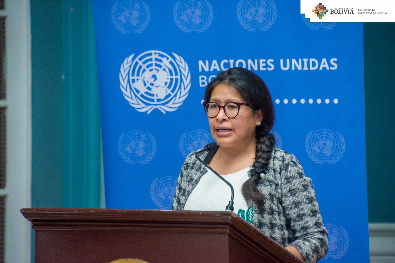 Mamani destacó la participación activa del Estado Plurinacional de Bolivia en los espacios multilaterales que permitieron articular instrumentos internacionales para reducir los riesgos y vulnerabilidades que los migrantes enfrentan, como la Agenda 2030 para el Desarrollo Sostenible y el Pacto Mundial para la Migración.