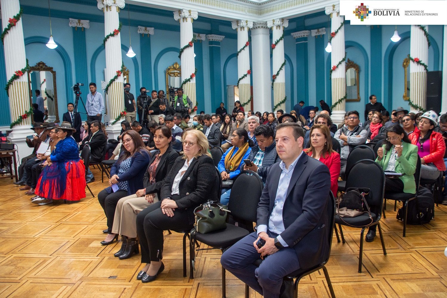 El Viceministro de Relaciones Exteriores, Freddy Mamani, mencionó que el mundo se encuentra ante el desafío de consolidar un orden mundial más justo, en el que se construyan puentes de integración y solidaridad entre los países y pueblos, que se convierten en la respuesta a la crisis migratoria.