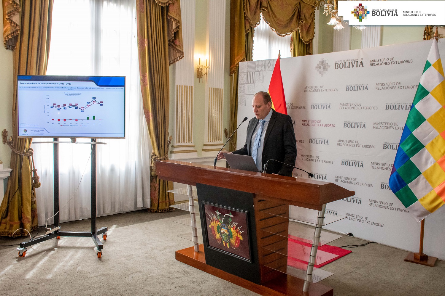 “Esto demuestra que estamos en un excelente desempeño y lo continuamos teniendo. Nuestro comercio exterior boliviano se enmarca en el Plan de Desarrollo Económico y Social 2021-2025 encabezado por nuestro Presidente Luis Arce”, explicó la autoridad.
