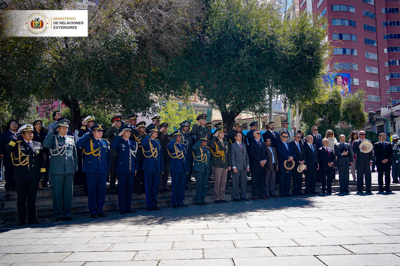 Durante el homenaje, realizado en el monumento al General José de San Martín, en el barrio de Miraflores de la ciudad de La Paz, se rindió tributo a los caídos y se expresó reconocimiento a los veteranos, destacando su valor, patriotismo y compromiso.