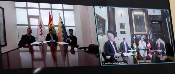 Los presidentes de Bolivia, Rodrigo Paz, y del Perú, José