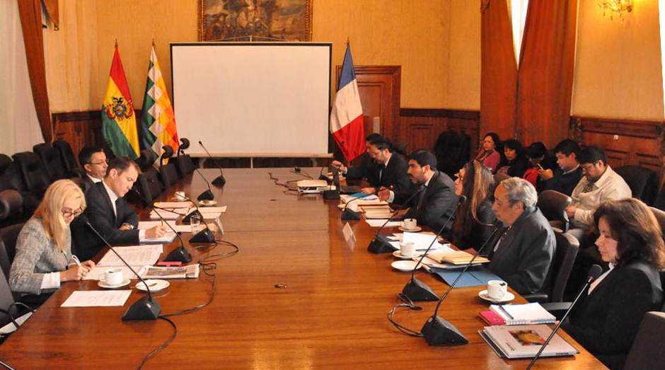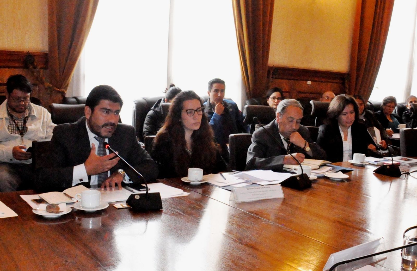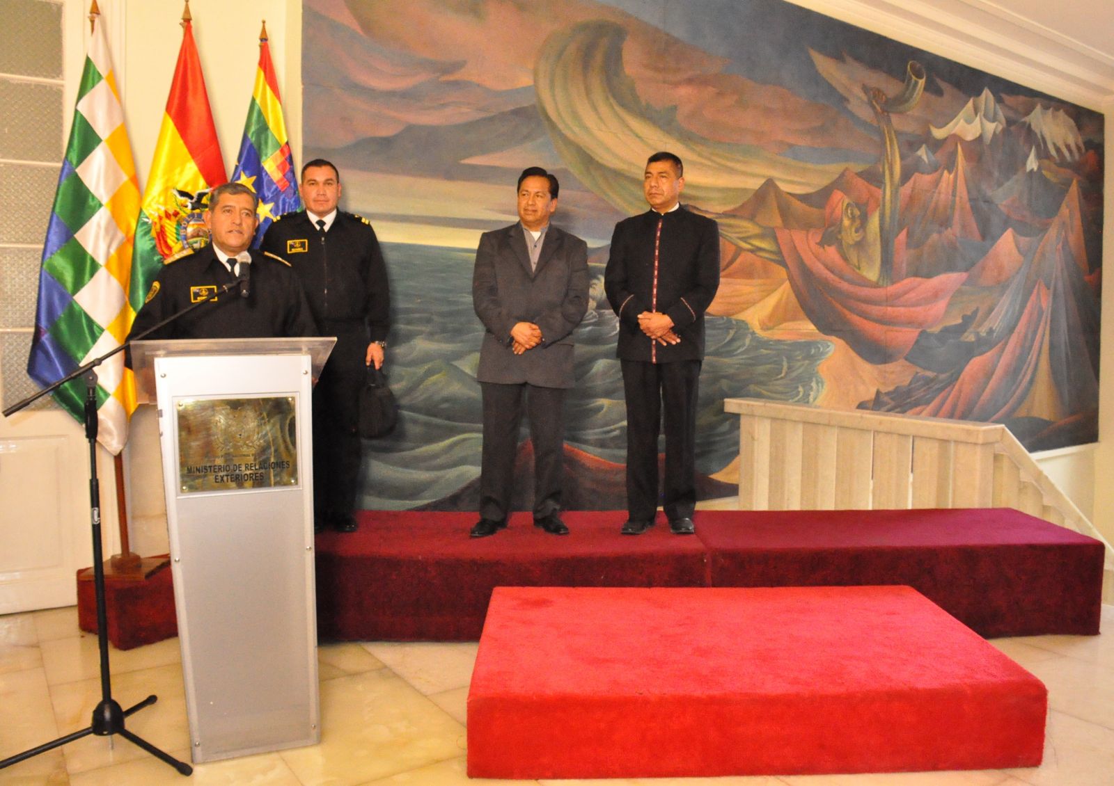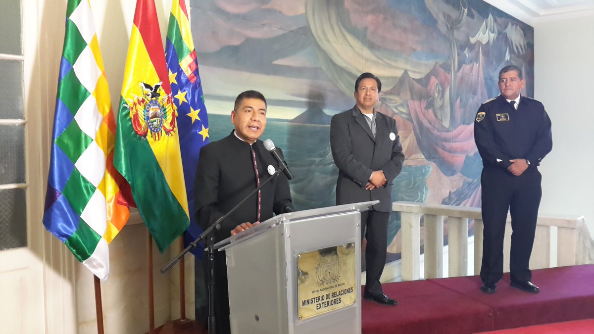 Canciller Fernando Huanacuni Mamani durante su exposición.