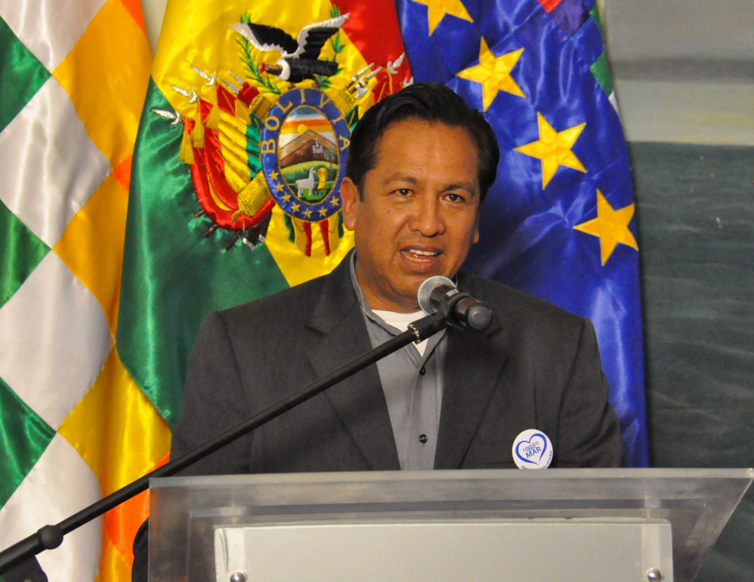 Canciller Fernando Huanacuni en el evento en Cochabamba.