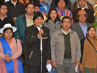 “La historia de Bolivia va a tener que ser contada, antes de Evo y después de Evo, porque la diferencia es muy grande de los que lo antecedieron, él tiene esa fuerza que viene de los ancestros. Cuando hablamos del proceso estamos hablando de un proceso bañado de muchas fuerzas. Por eso tenemos una gran responsabilidad los que acompañamos al hermano Presidente, bajo los principios de transparencia y honestidad”