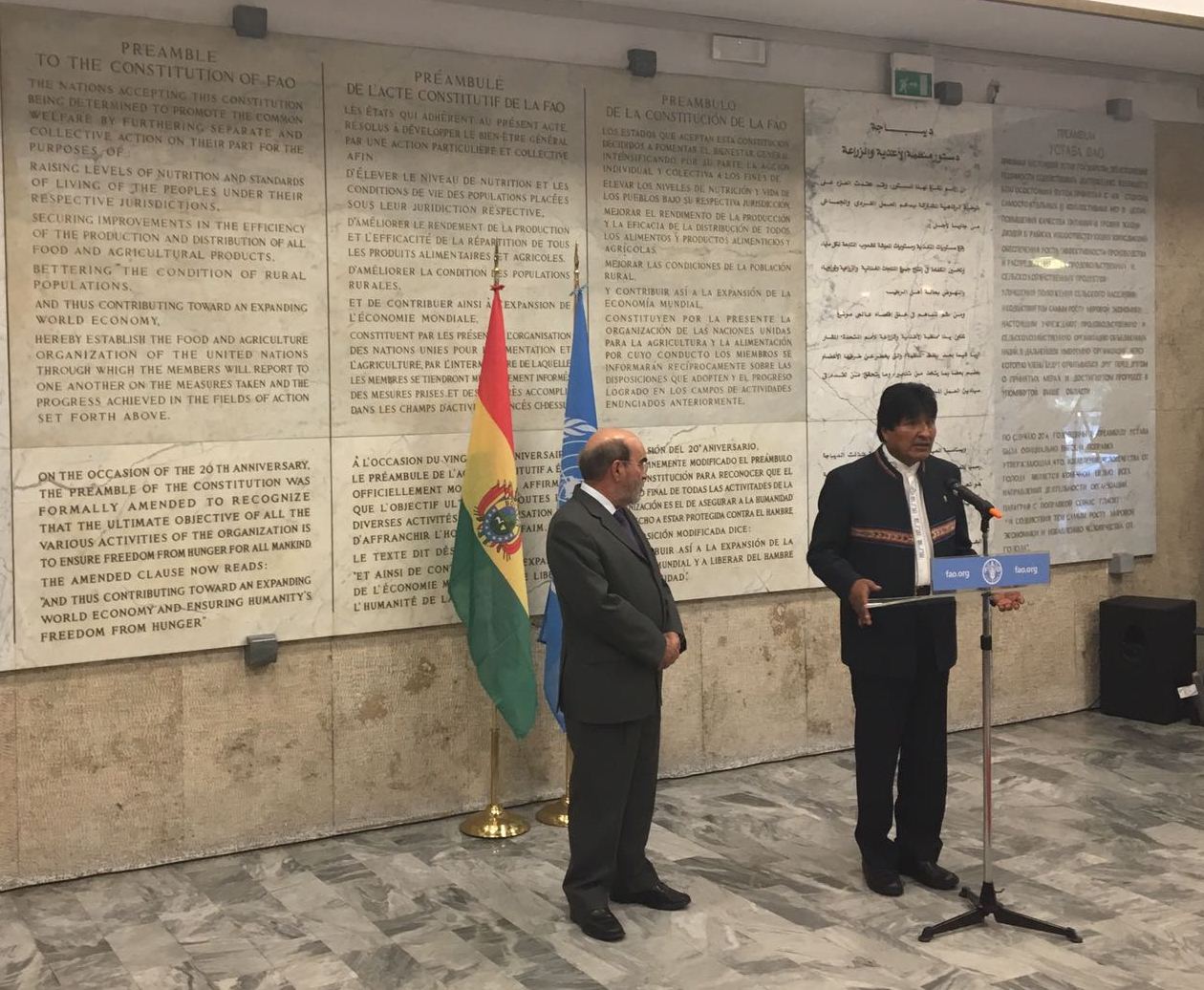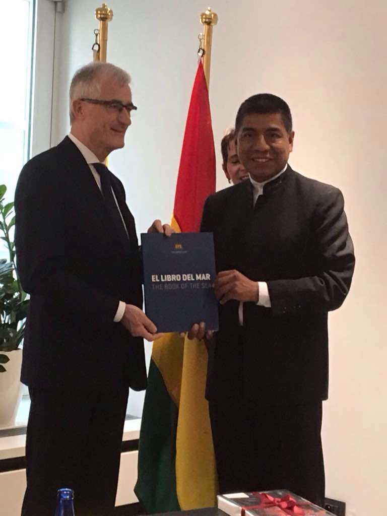 “Para mí es un grato honor, a nombre del presidente Evo Morales, imponer esta condecoración bien merecida. Usted es fiel testigo de todo lo que está sucediendo en Bolivia y de los grandes esfuerzos del gobierno boliviano en coordinación con la UNODC”, dijo el ministro de Relaciones Exteriores.