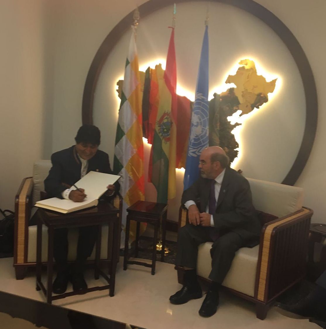 “El hermano Antonino de Leo ha desarrollado su gestión en el marco del pleno respeto a la normativa nacional, logrando la complementariedad con el mandato de la UNODC para avanzar en sinergias que han quedado establecidas en el programa País”, destacó el canciller Huanacuni.