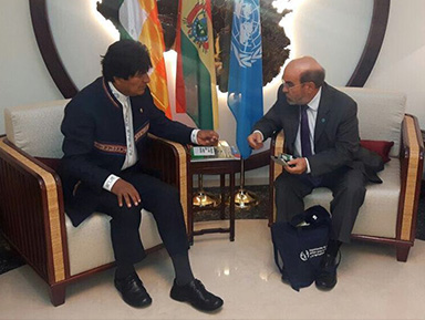 El canciller boliviano aseguró que el Programa País consensuado es el único vigente en América Latina, el mismo refleja la voluntad del gobierno boliviano para ampliar la asistencia técnica de la UNODC en nuevas áreas de trabajo. “Con estas actividades es posible afirmar que durante la gestión del hermano Antonino De Leo se consolidó como una de las agencias de las Naciones Unidas más activas en Bolivia”, aseguró Huanacuni.