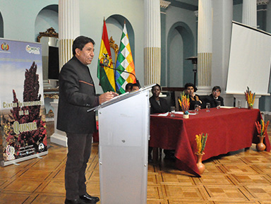 “Hemos estado en Venezuela, Isla Margarita del 13 al 18 de septiembre participando de la XVII Cumbre del Mnoal, espacio del que participan 120 países y se constituye en un importante foro de concertación política, de arreglo de disputas internacionales por medios pacíficos y de trabajo para la paz, el desarme, la lucha contra los imperialismos, el respeto a la soberanía. Por estos principios, Bolivia da mucha importancia a la consolidación de este foro, en cuyo documento final se logró incorporar el reconocimiento del Día Internacional de la Madre Tierra. Para el presidente Morales, para los indígenas y para Bolivia es importante proteger nuestra casa grande por eso es importante incorporar esta declaración en todos los eventos internacionales”, afirmó Choquehuanca.