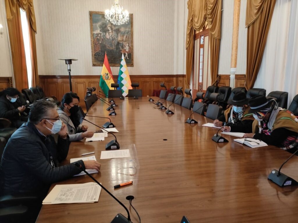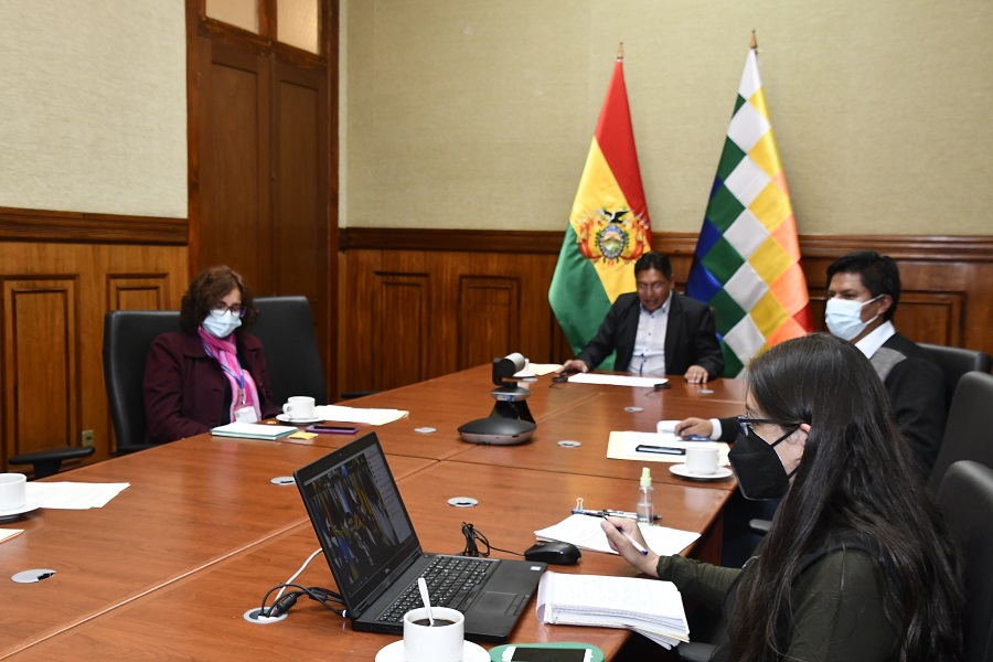 El Viceministro de Relaciones Exteriores, Emb. Freddy Mamani Machaca y el Viceministro de Agua Potable y Saneamiento Básico, Carmelo Valda Duarte, junto a los equipos técnicos, hoy miércoles 5 de enero, se reunieron en las instalaciones de la Cancilleria para conversar sobre el proceso preparatorio de la VI Conferencia Latinoamericana de Agua y Saneamiento – LATINOSAN 2022 “Saneamiento: Un Llamado a la Acción”, que se celebrará en Bolivia en octubre 2022.