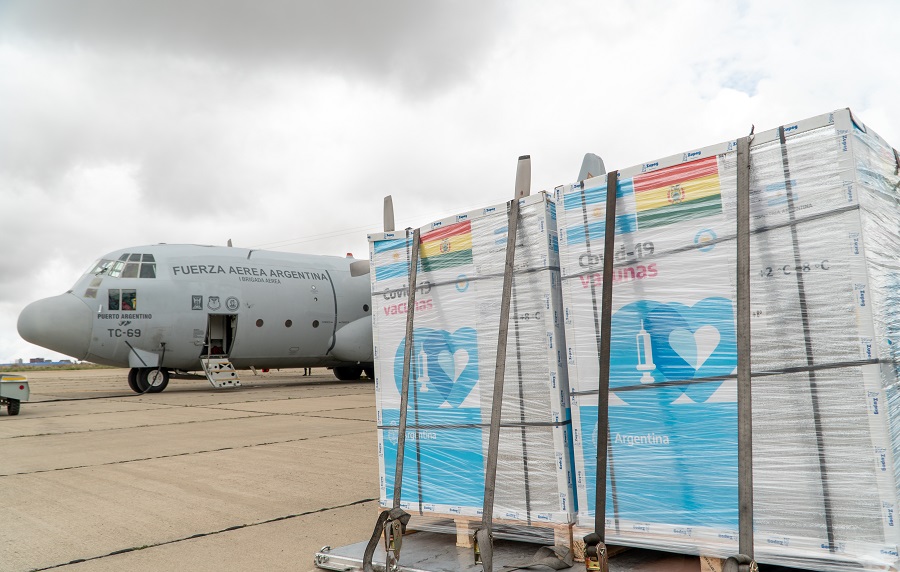 Bolivia recibe un millón de vacunas Astrazeneca fabricadas en Argentina