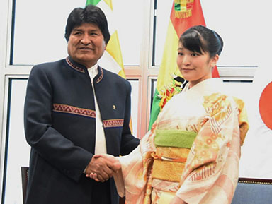 «Agradecemos a nombre del pueblo boliviano la cooperación y le damos la bienvenida a la Princesa Mako de Japón a nuestro país», manifestó el Presidente del Estado Plurinacional, Evo Morales Ayma a tiempo de valorar el apoyo recibido desde el gobierno japonés.