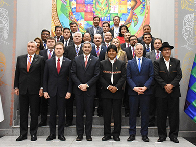3. Coincidieron en la importancia de la incorporación del Estado Plurinacional de Bolivia al Mercado Común del Sur (MERCOSUR). Al respecto, el Presidente del Paraguay abogó por la pronta culminación del proceso de ratificación del Protocolo de Adhesión como miembro pleno del bloque.