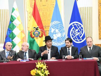 “Agradecemos la participación comprometida de los ex Presidentes, ex Cancilleres, de nuestro Agente Eduardo Rodriguez Veltzé y del vocero de la Demanda Marítima, Carlos Mesa”, dijo el Jefe de Estado.