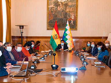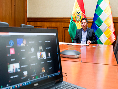 Se hizo hincapié en la importancia de la distribución equitativa y solidaria de vacunas propiciando las acciones en el ámbito multilateral para la exención de las reglas de propiedad intelectual que permitan la fabricación de vacunas e insumos, en el marco de la posición boliviana sobre la liberación de patentes.