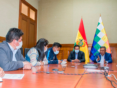 Como parte de la organización del evento, en Canciller Rogelio Mayta y el Vicecanciller Freddy Mamani Machaca se reunieron con autoridades, representantes estudiantiles y docentes de la Universidad Pública de El Alto (UPEA). En el encuentro el jefe de la diplomacia boliviana explicó la problemática internacional del acceso a las vacunas contra el Covid-19 y los objetivos y alcances de la iniciativa boliviana que busca liberalizar las patentes de esas inmunizaciones para posibilitar un acceso equitativo de todos los países.