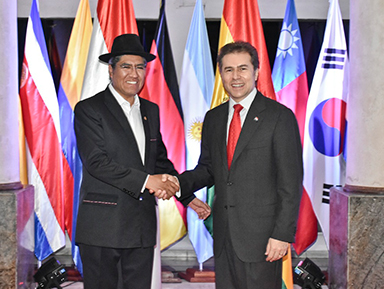 «Hoy somos un país con grandes oportunidades para la inversión extranjera, con una ubicación geográfica estratégica en el corazón de Suramérica», subrayó el diplomático boliviano que estuvo acompañado del Viceministro de Comercio Exterior, Benjamín Blanco, y el Embajador de Bolivia, Heriberto Quispe.