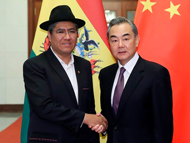 Las Relaciones Diplomáticas entre el Estado Plurinacional de Bolivia y la República Popular China datan de julio de 1985. Desde entonces se han desarrollado en un marco de cooperación y amistad con reuniones de alto nivel. “El Canciller Wang Xi expresó, a nombre del Presidente Xi Jinping, todo el apoyo a nuestro país y al Presidente Evo Morales; y todo el apoyo para seguir trabajando de manera conjunta, China tiene toda la voluntad política para seguir abriendo los mercados a los productos bolivianos», señaló Pary.