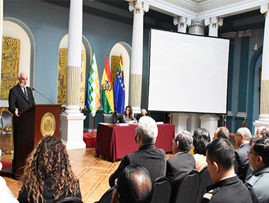 En su intervención el Canciller Pary hizo referencia a la profundización de la democracia en Bolivia. “Desde el retorno a la democracia, la población boliviana fue en reiteradas oportunidades a las urnas electorales para elegir un gobierno legalmente constituido, que se hiciera cargo de los destinos del país. Sin embargo, debido a la baja legitimidad de los actores políticos por el manejo discrecional, sectario y patrimonialista que hacían de las instituciones públicas, en las elecciones presidenciales de los años 1985, 1989, 1993, 1997 y 2002, fue el entonces denominado Congreso Nacional, y no el voto popular, el que en definitiva eligió a los presidentes y vicepresidentes del Estado”, rememoró.