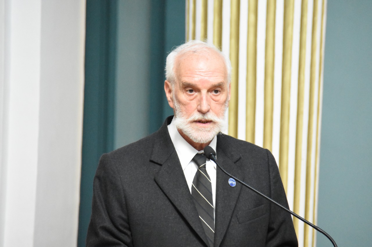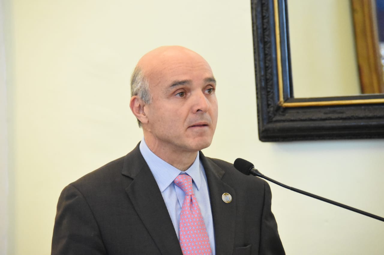 Ministro de Relaciones Exteriores, Emb. Diego Pary, durante su alocución