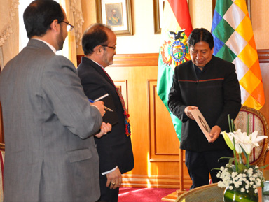 y el Ministro de Relaciones Exteriores David Choquehuanca (derecha)