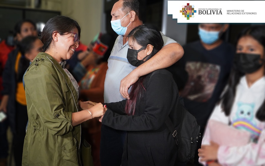 “Esta es la primera familia boliviana que ha podido llegar a través de las gestiones de Cancillería, con recursos propios del Estado boliviano. Todas las actuaciones en materia de asistencia y protección consultar se traducen en el retorno de la ciudadana boliviana Rita y sus tres hijos”, aseveró Chuquimia.