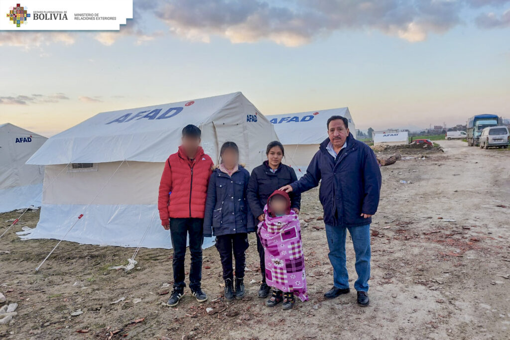 A través de los diversos medios que la Embajada de Bolivia en Turkiye habilitó para comunicarse con los connacionales, se tomó contacto con la familia y trasladó a la ciudad de Ankara, a un lugar en el que se les brindó las condiciones más óptimas y los servicios necesarios, mientras se concluyó la tramitación de los documentos necesarios para su retorno a Bolivia.