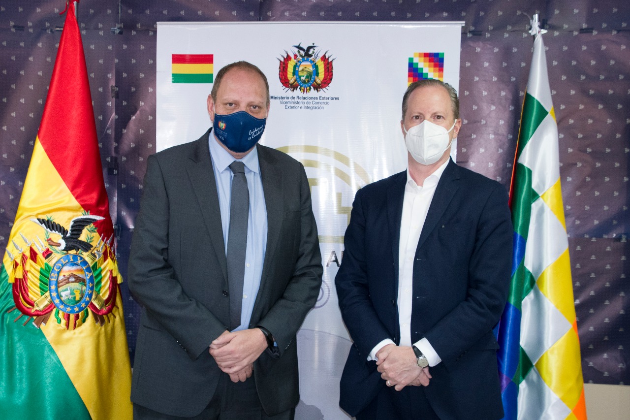 El Viceministro de Comercio Exterior e Integración, Benjamín Blanco se reunió con el Embajador de la Unión Europea Michael Doczy, para dialogar temas económico – comerciales de interés bilateral y multilateral. Acordaron una agenda de trabajo a fin de impulsar a Bolivia como un espacio de inversión y de oportunidades a través de la continuidad del Sistema de Preferencias Generalizadas (SGP+) y de un posible acuerdo multipartes eminentemente comercial.